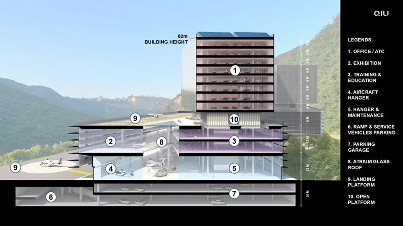 QIU受邀設計的深圳首個載人無人機港,將在未來成為大灣區低空商務旅行的新總部,兼備救援中心及未來電動垂直起降(eVTOL)測試基地。